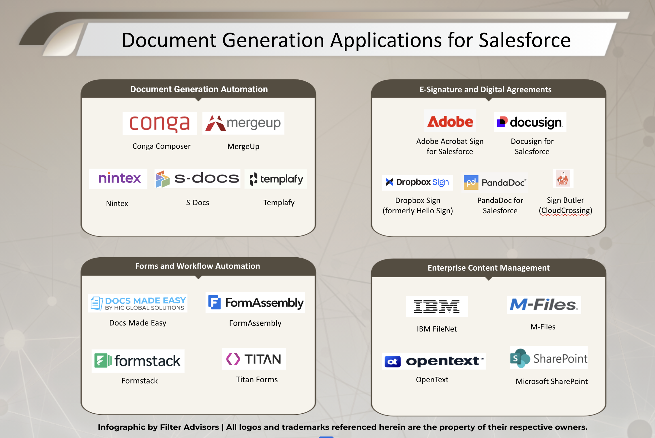 There is not one App that fills every Document Management need, so IT teams need to figure out which apps from which categories will help them the most. At Filter Advisors, we’ve been working with Sales and Marketing Teams since 2015, and we’ve seen a ton of them benefit from different types of Document Management Software. However, we realized that the Document Management space was very confusing for an IT leader who is just starting to look at the different types of tools available to them